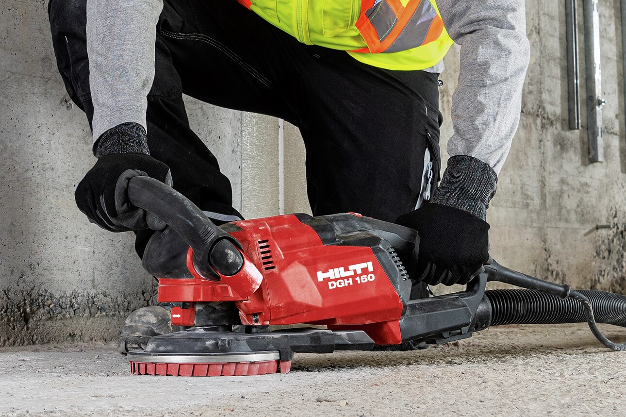 DGH 150 призначена виключно для підлог, забезпечує потужність, необхідну для інтенсивного шліфування та видалення покриттів, таких як фарба, клей та епоксидна смола, з твердих бетонних поверхонь.