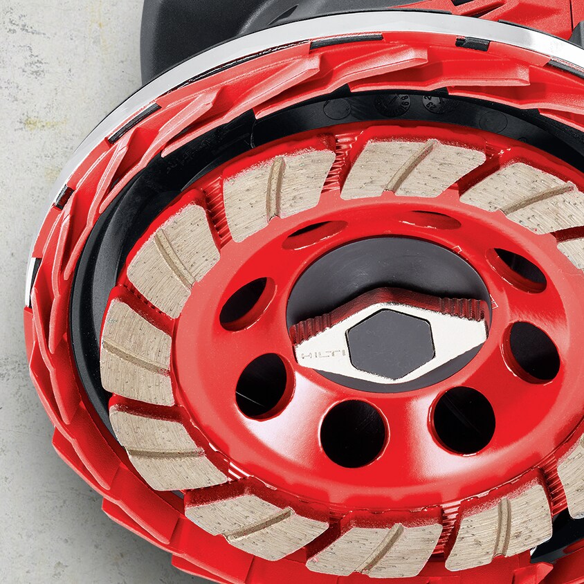 Ви можете використовувати як шліфувальні чашки, так і полірувальні диски. Просто встановіть тримач чашки або диск безпосередньо на машину. Для бетоношліфувальних машин DGH 130 використовуйте чашки діаметром 125 мм, а для DGH 150 - 150 мм.