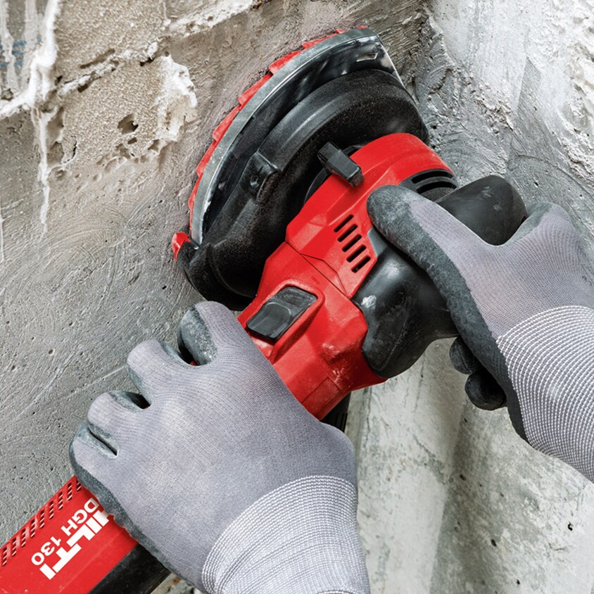 DGH 130 забезпечує стабільну продуктивність і має невелику вагу, що дозволяє безперервно шліфувати стіни та виконувати рівну обробку на великих ділянках.